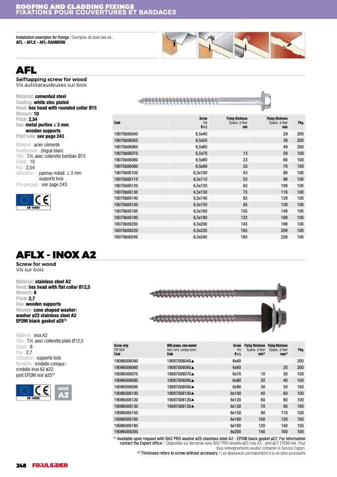 Available upon request with BAZ PRO washer ø25 stainless steel A2 - EPDM black gasket ø27. For information