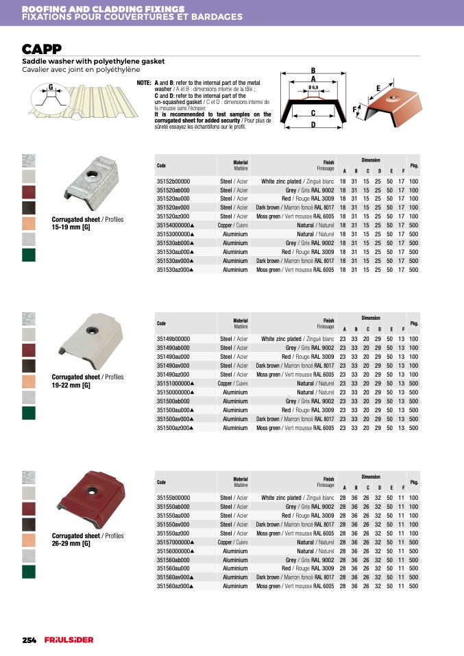 washer / A et B : dimensions interne de la tôle ;