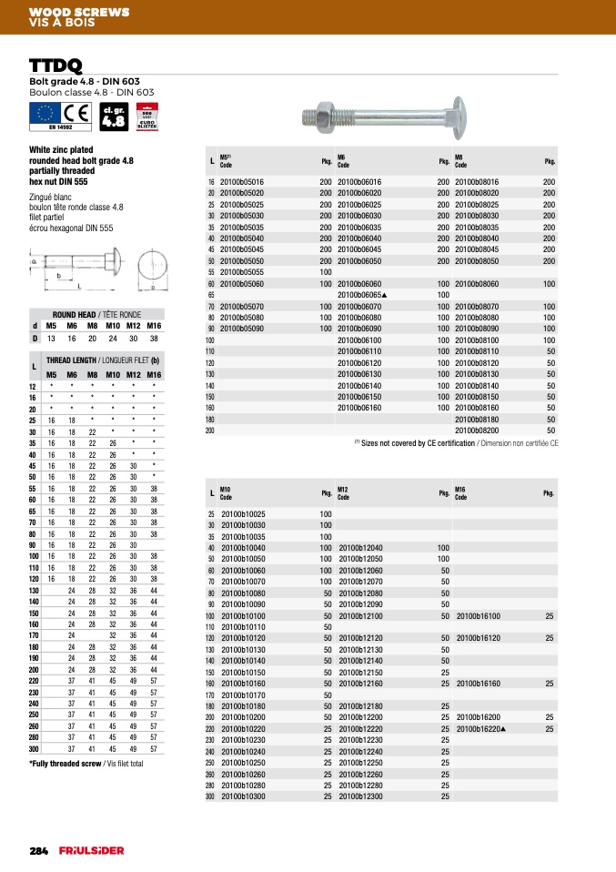 Sizes not covered by CE certification / Dimension non certifiée CE