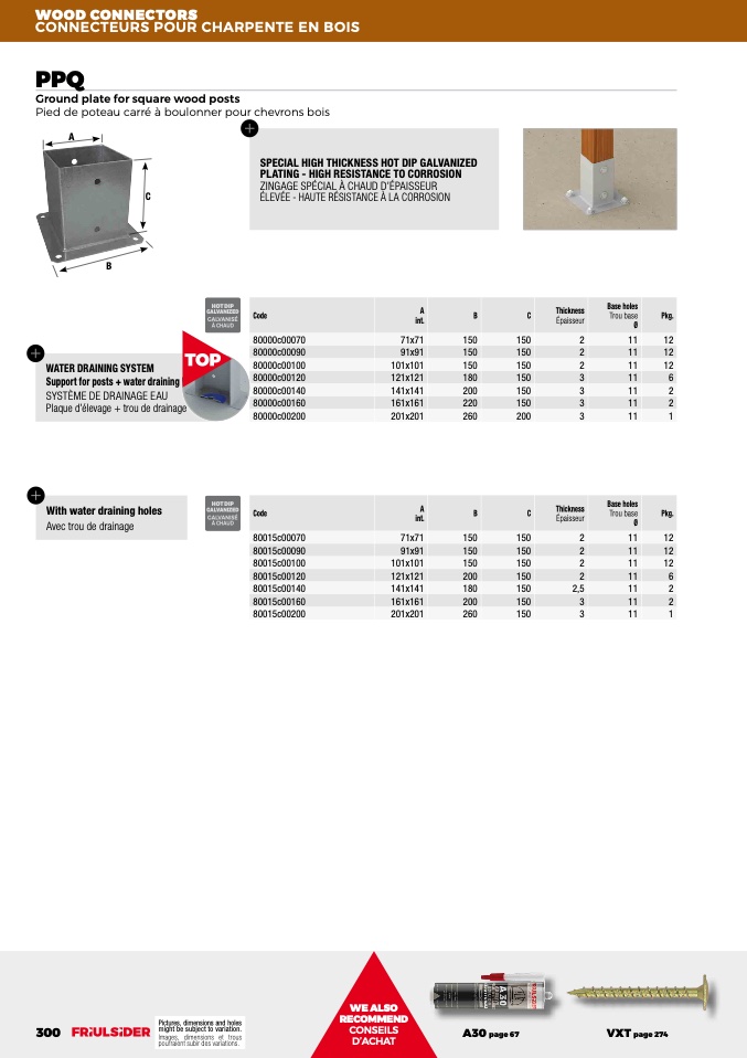 Support for posts + water draining holes