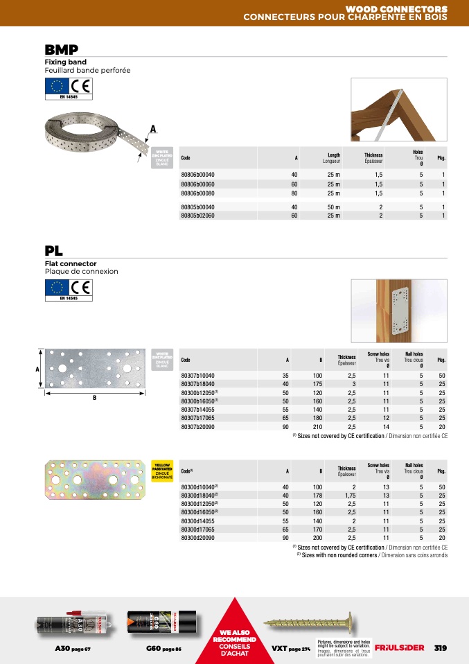 Sizes not covered by CE certification / Dimension non certifiée CE