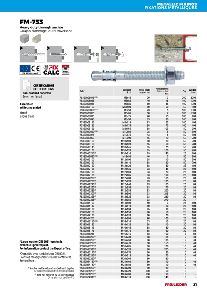 *Disponible avec rondelle large DIN 9021.