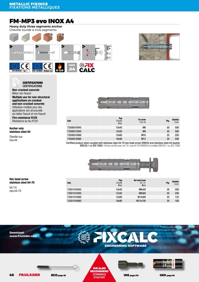 Certified product when coupled with stainless steel A4-70 hex head screw DIN933 and stainless steel A4 washer