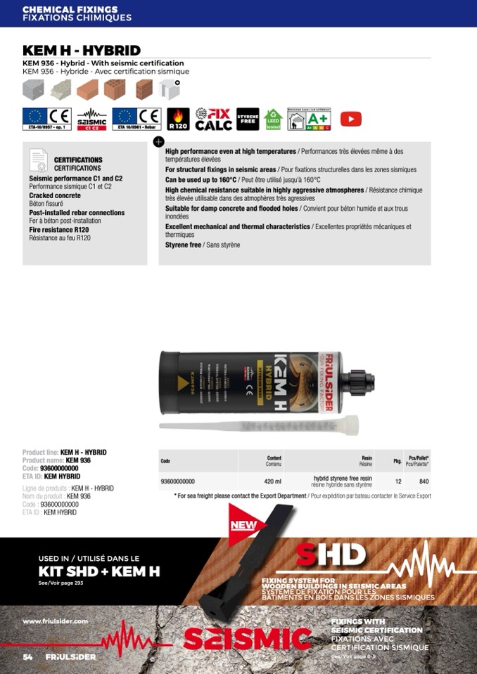 For structural fixings in seismic areas / Pour fixations structurelles dans les zones sismiques
