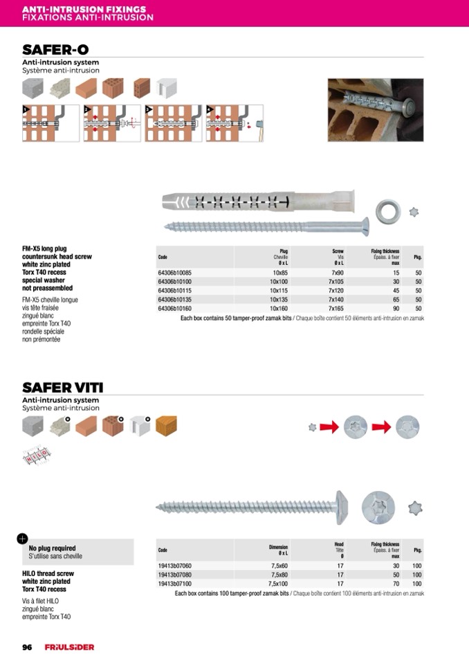 Each box contains 100 tamper-proof zamak bits / Chaque boîte contient 100 éléments anti-intrusion en zamak