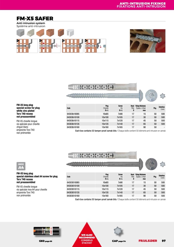 box contains 50 tamper-proof zamak bits / Chaque boîte contient 50 éléments anti-intrusion en zamak