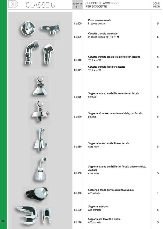 Curvette cromate con ghiera girevole per doccette