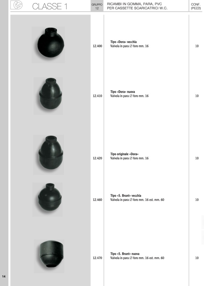 Valvola in para ∅ foro mm. 16 est. mm. 60
