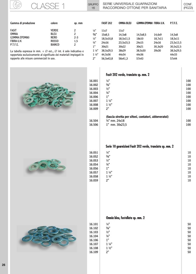 La tabella espressa in mm. ÷ ∅ est., ∅ int. è solo indicativa e