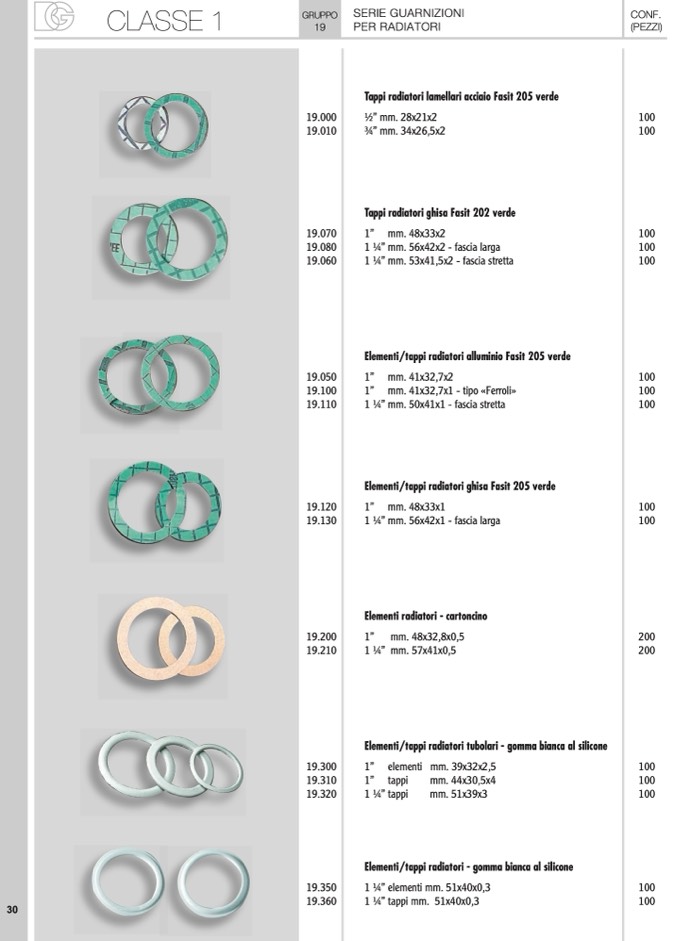 Elementi/tappi radiatori tubolari - gomma bianca al silicone