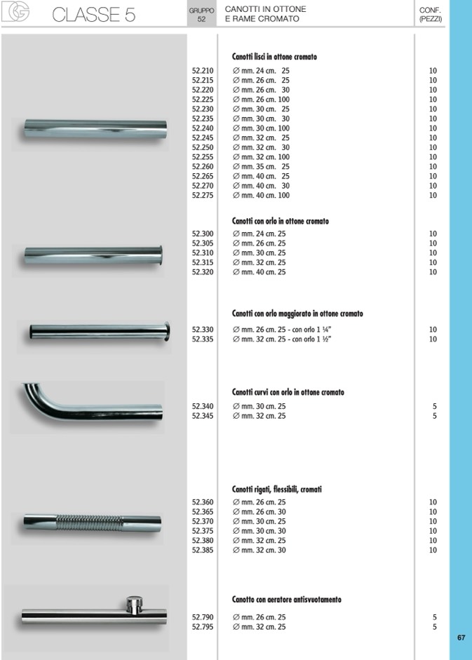 Canotti lisci in ottone cromato