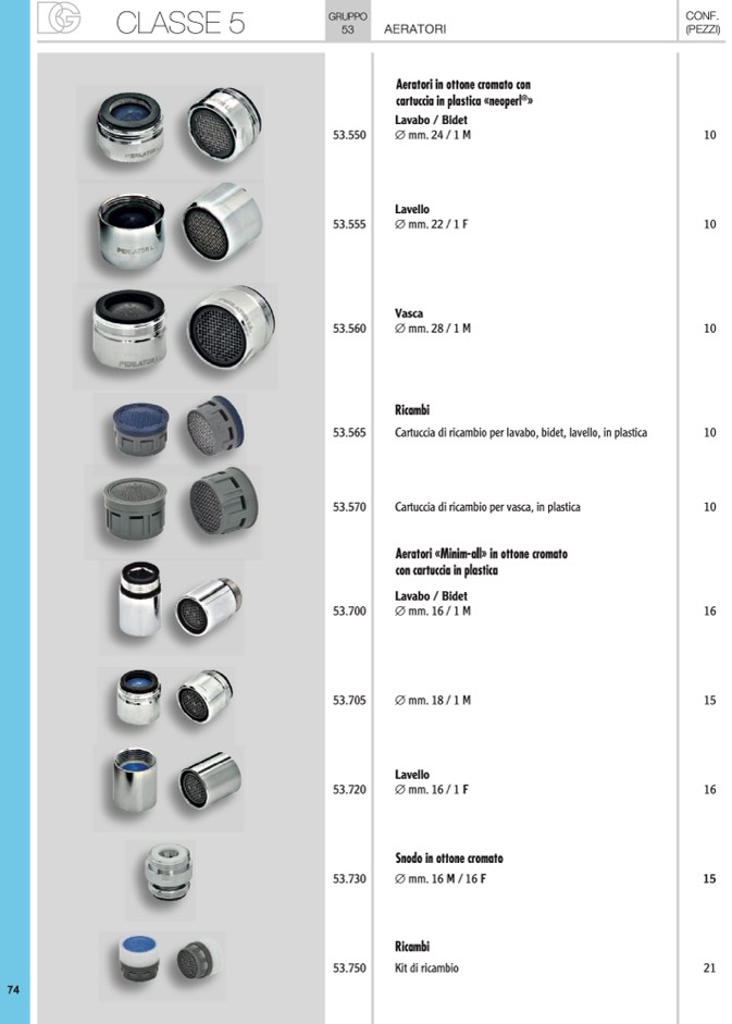 Aeratori in ottone cromato con