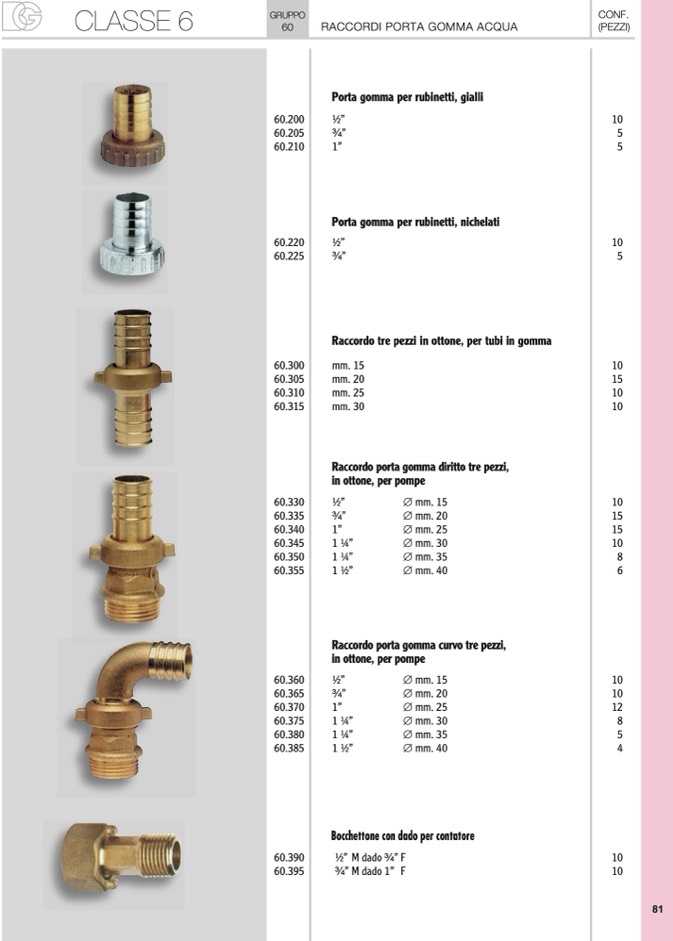 Raccordo tre pezzi in ottone, per tubi in gomma