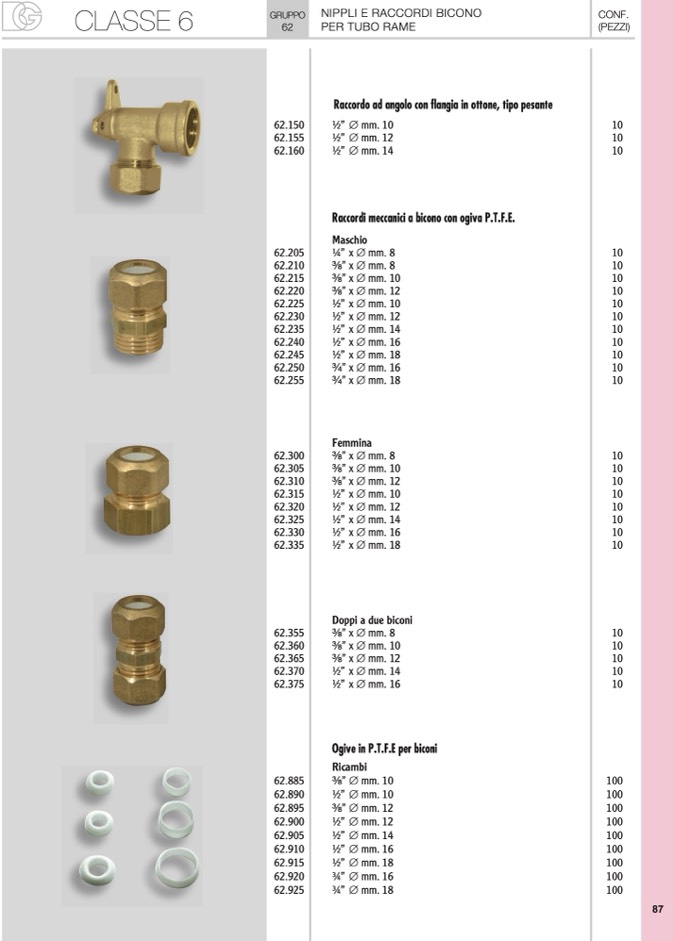 Raccordi meccanici a bicono con ogiva P.T.F.E.