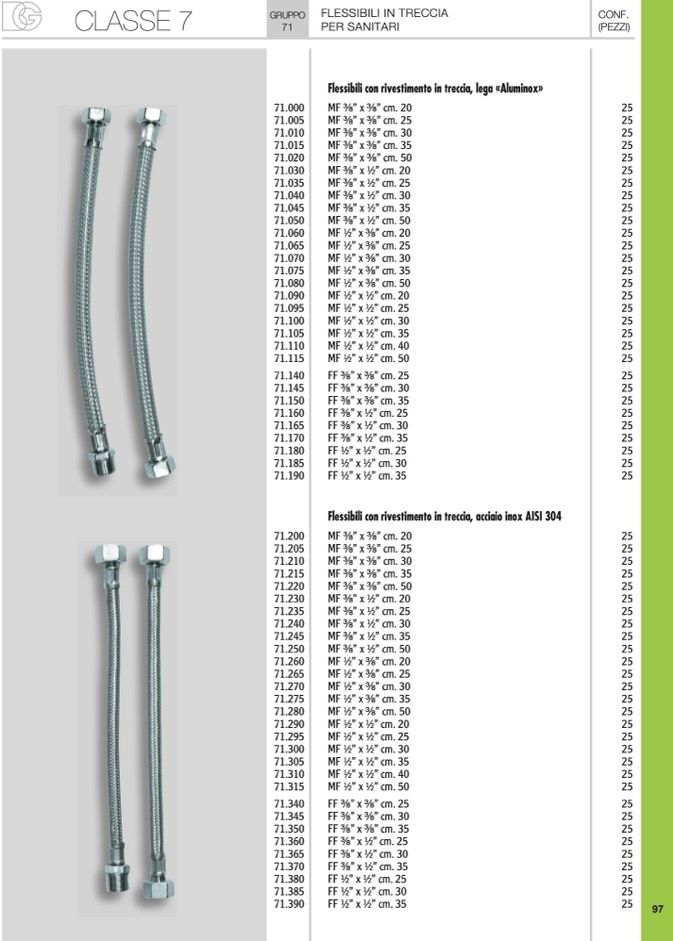 Flessibili con rivestimento in treccia, acciaio inox AISI 304