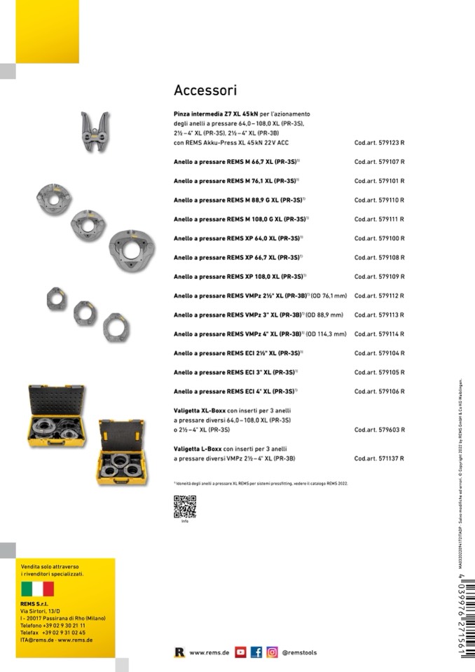Idoneità degli anelli a pressare XL REMS per sistemi pressfitting, vedere il catalogo REMS 2022.