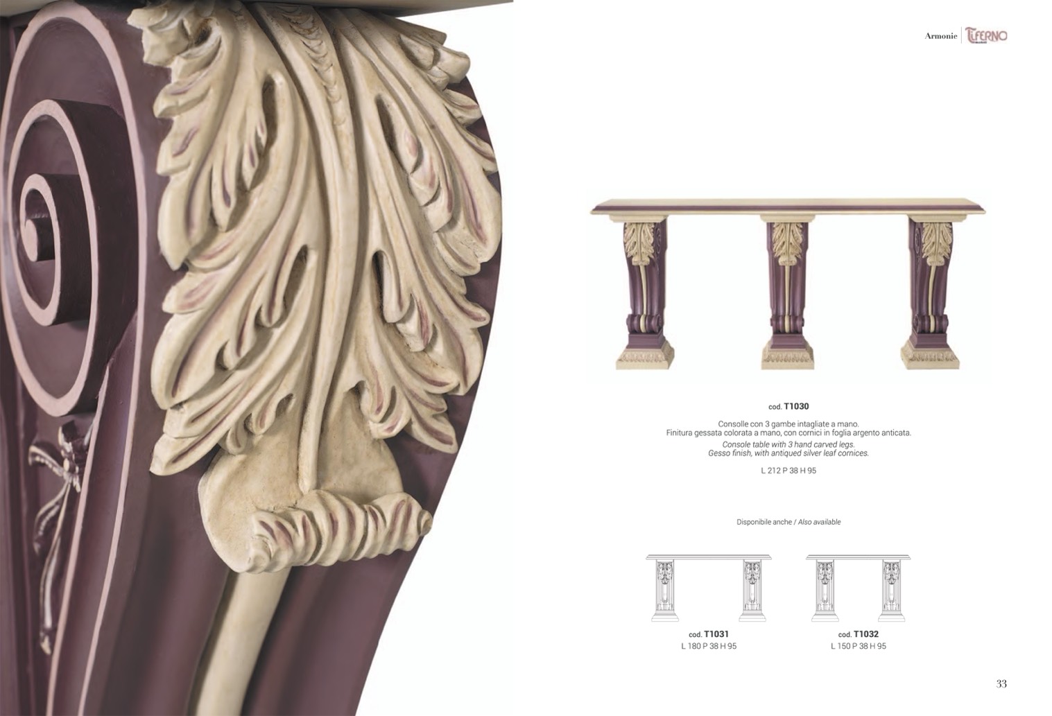 Consolle con 3 gambe intagliate a mano.