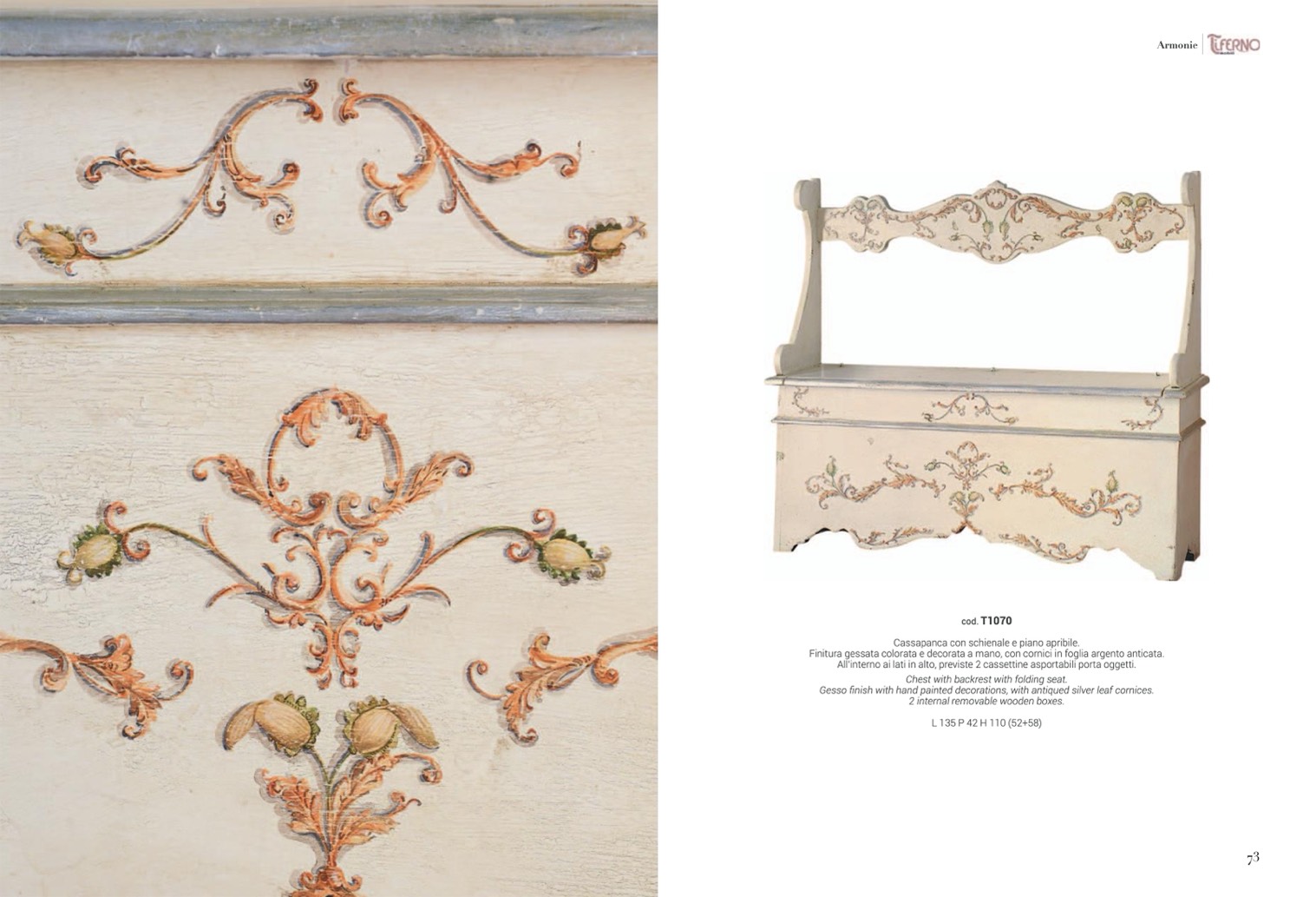 Cassapanca con schienale e piano apribile.