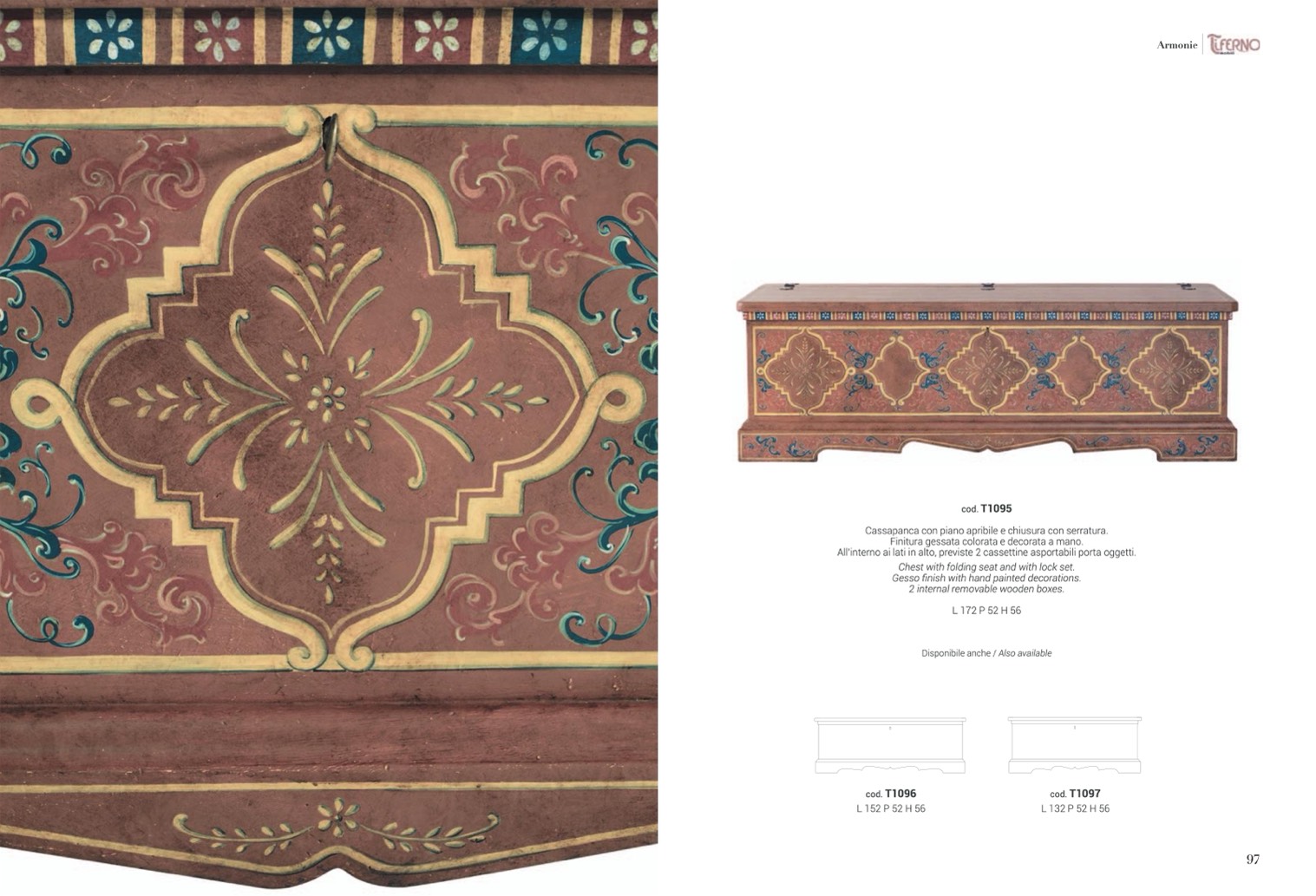 Finitura gessata colorata e decorata a mano.