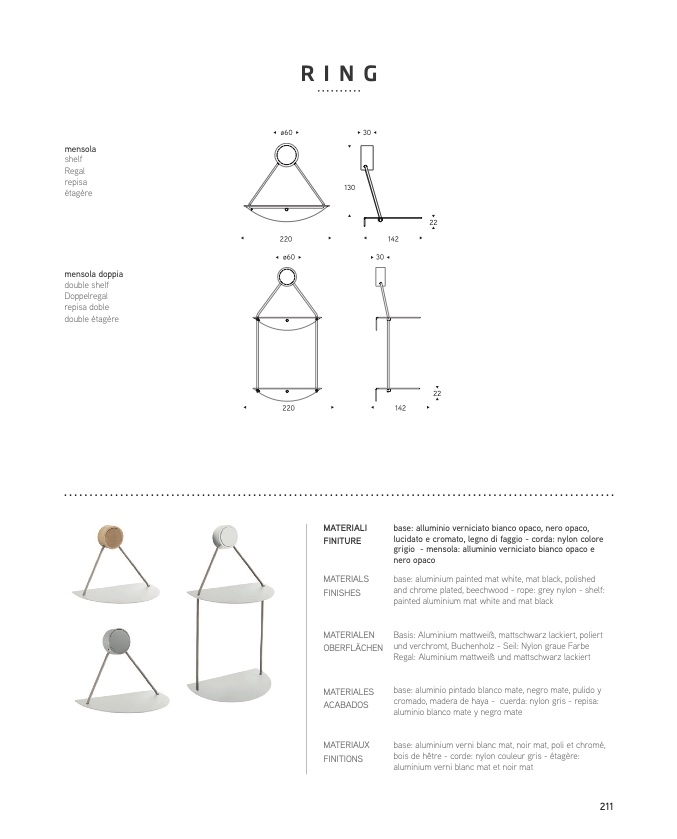 grigio - mensola: alluminio verniciato bianco opaco e