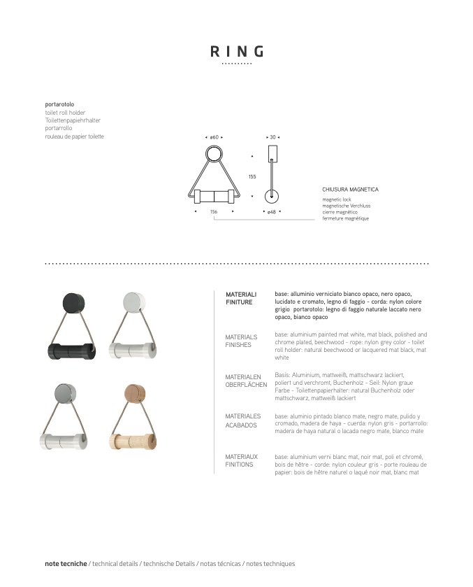 roll holder: natural beechwood or lacquered mat black, ma