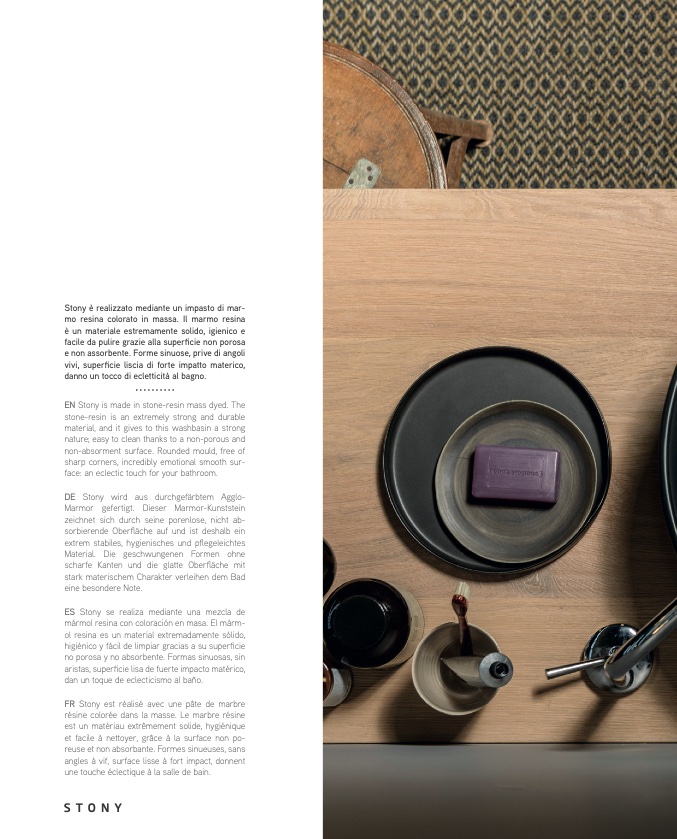 EN Stony is made in stone-resin mass dyed. Th