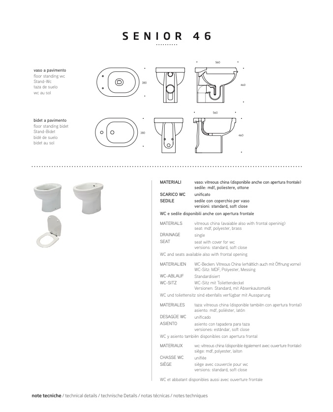 WC e sedile disponibili anche con apertura frontal