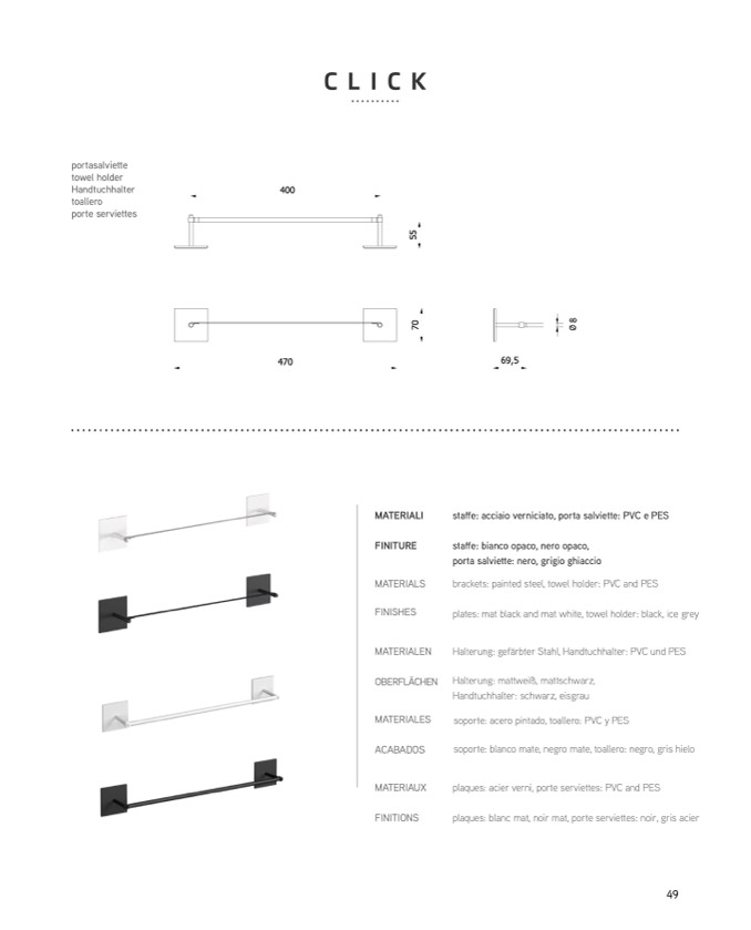 plaques: blanc mat, noir mat, porte serviettes: noir, gris acier
