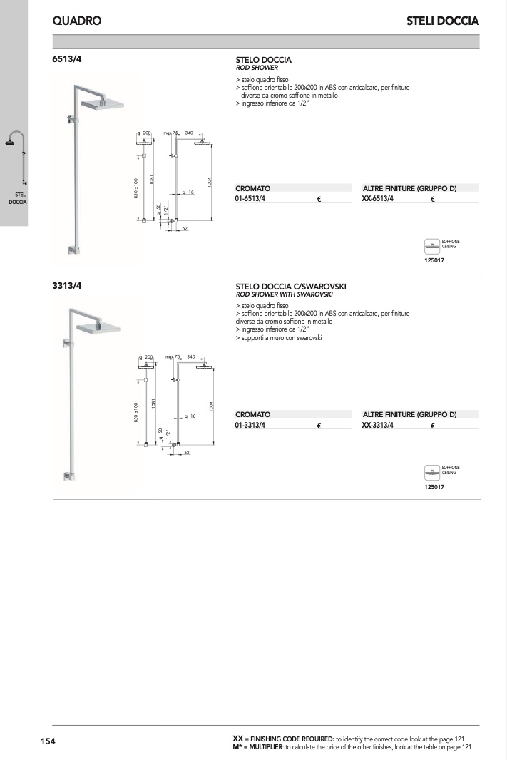 > soffione orientabile 200x200 in ABS con anticalcare, per finiture