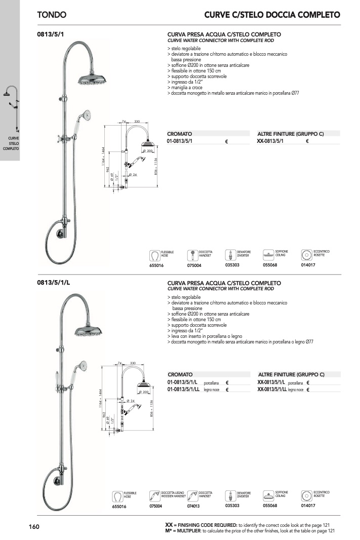 > soffione Ø200 in ottone senza anticalcare