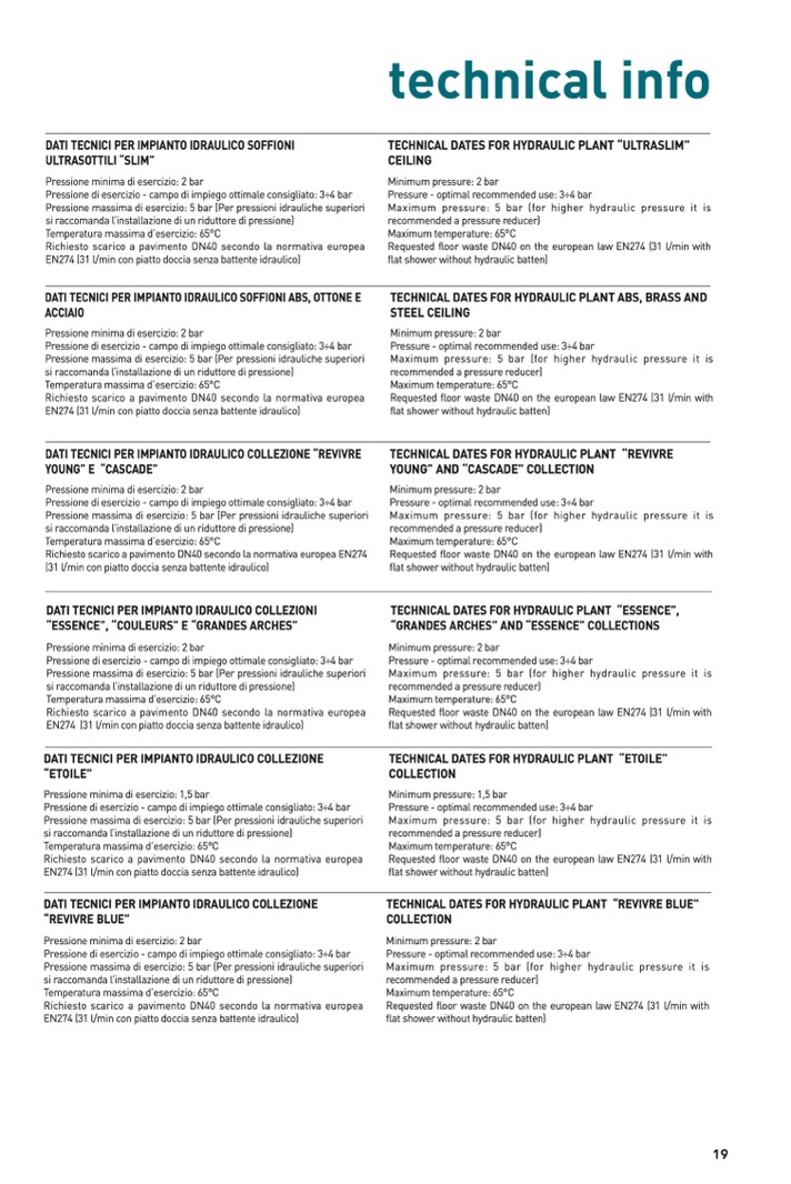 dATI TECnICI pER IMpIAnTO IdRAuLICO COLLEZIOnE