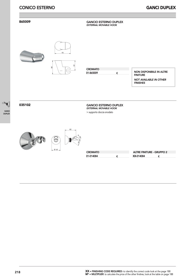 : to calculate the price of the other finishes, look at the table on page 188