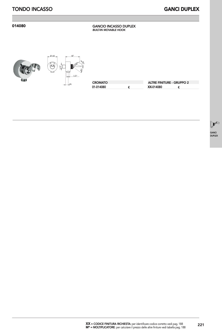 : per calcolare il prezzo delle altre finiture vedi tabella pag. 188