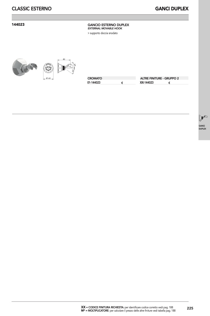 : per calcolare il prezzo delle altre finiture vedi tabella pag. 188