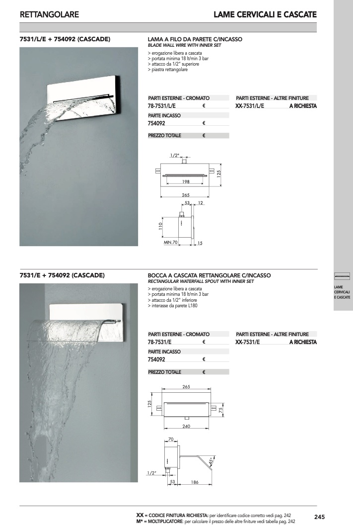 : per calcolare il prezzo delle altre finiture vedi tabella pag. 242