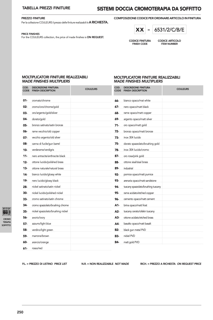 P.L. = PREZZO DI LISTINO PRICE LIST