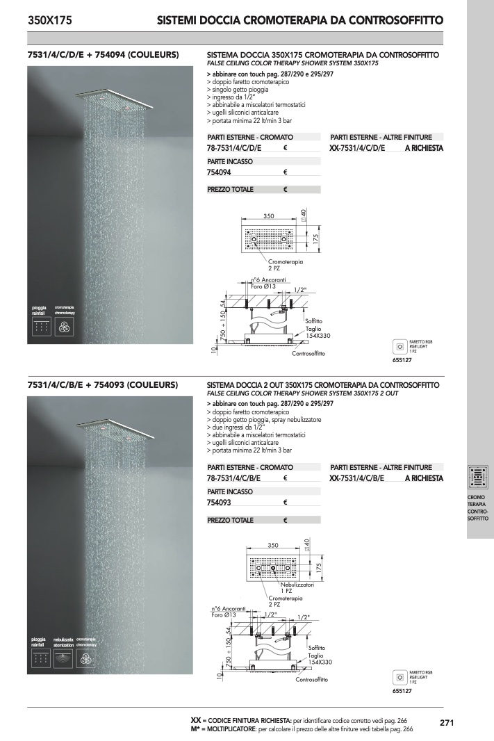 SISTEMA DOCCIA 350X175 CROMOTERAPIA DA CONTROSOFFITTO