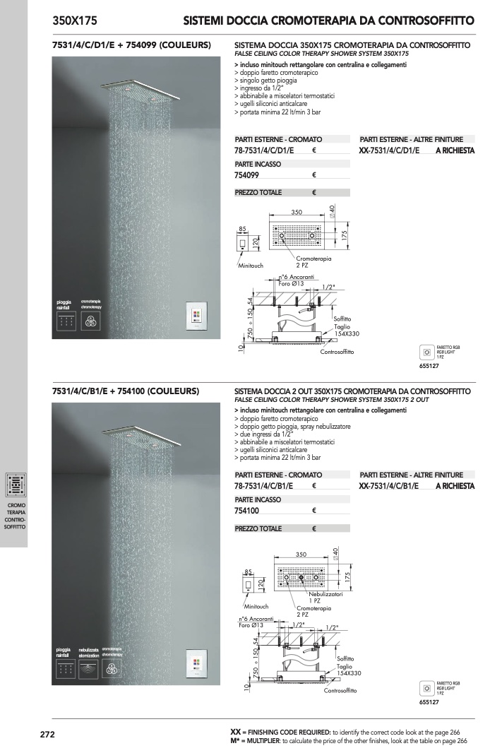 SISTEMA DOCCIA 350X175 CROMOTERAPIA DA CONTROSOFFITTO