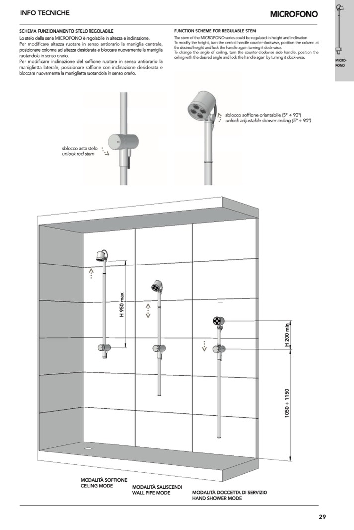 The stem of the MICROFONO series could be regulated in height and inclination.
