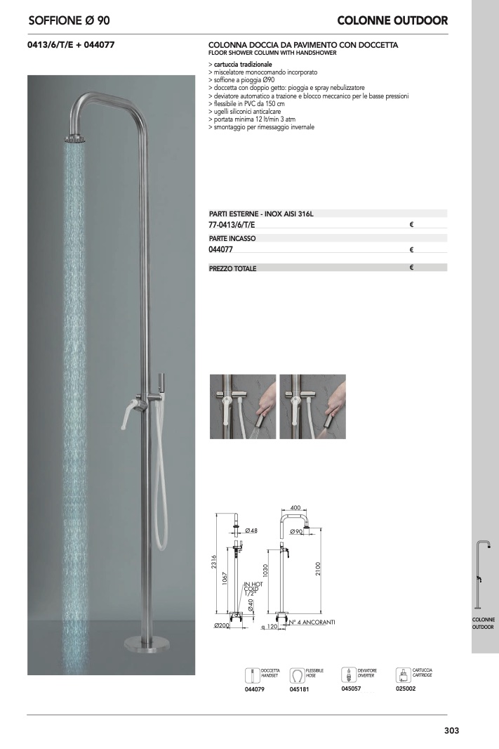 COLONNA DOCCIA DA PAVIMENTO CON DOCCETTA