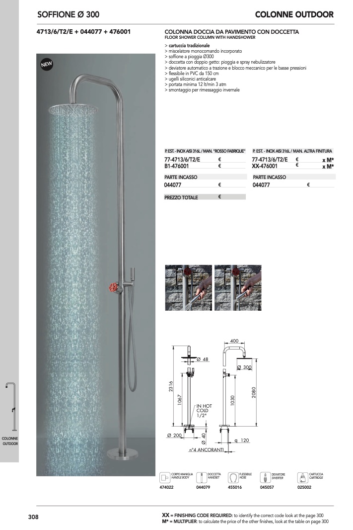 COLONNA DOCCIA DA PAVIMENTO CON DOCCETTA