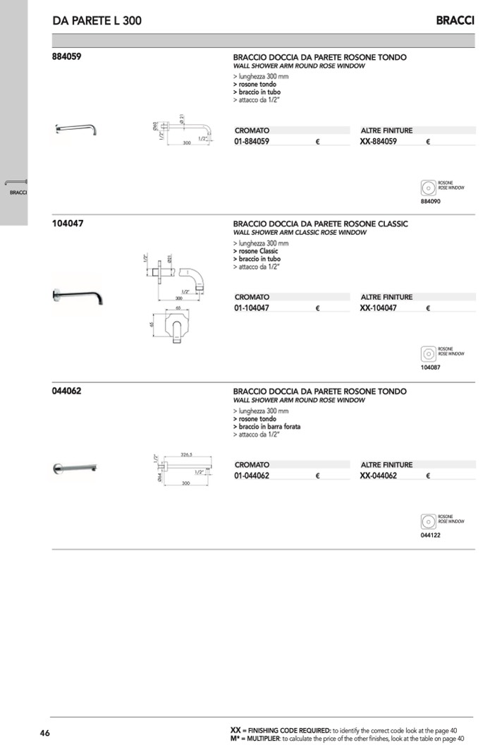 WALL SHOWER ARM ROUND ROSE WINDOW