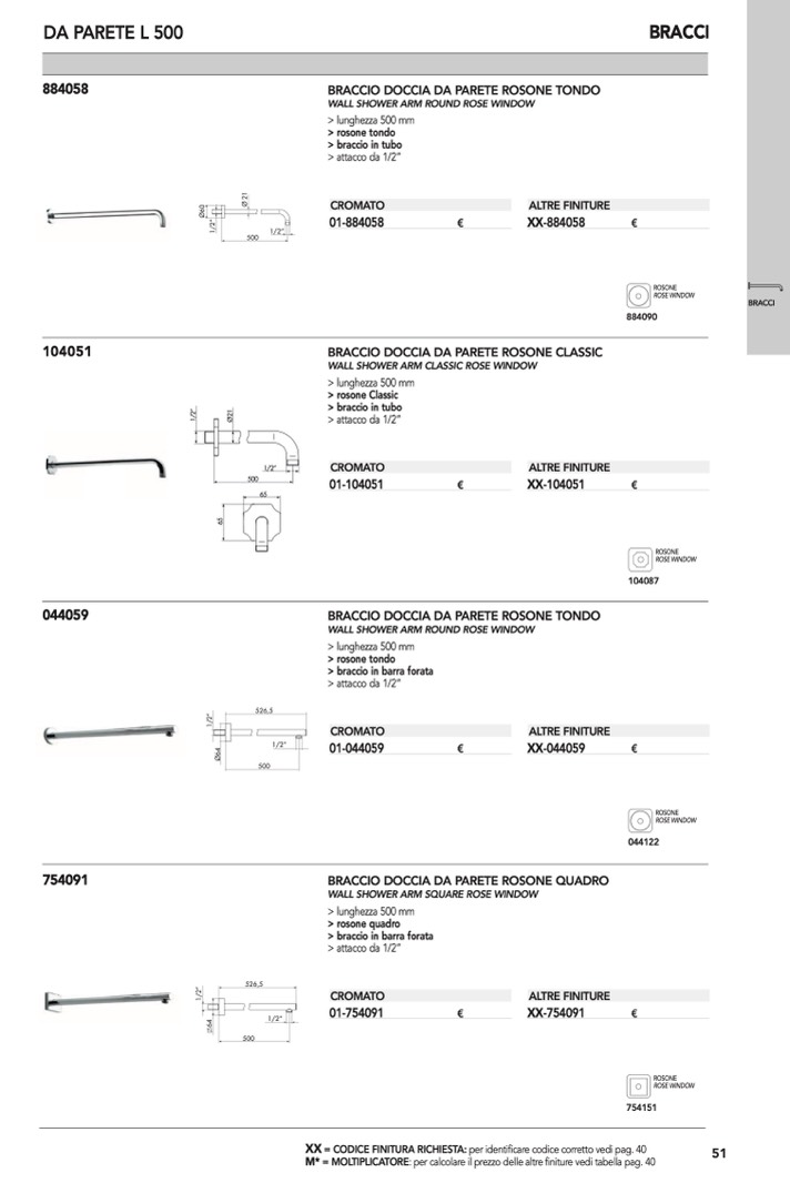 WALL SHOWER ARM SQUARE ROSE WINDOW