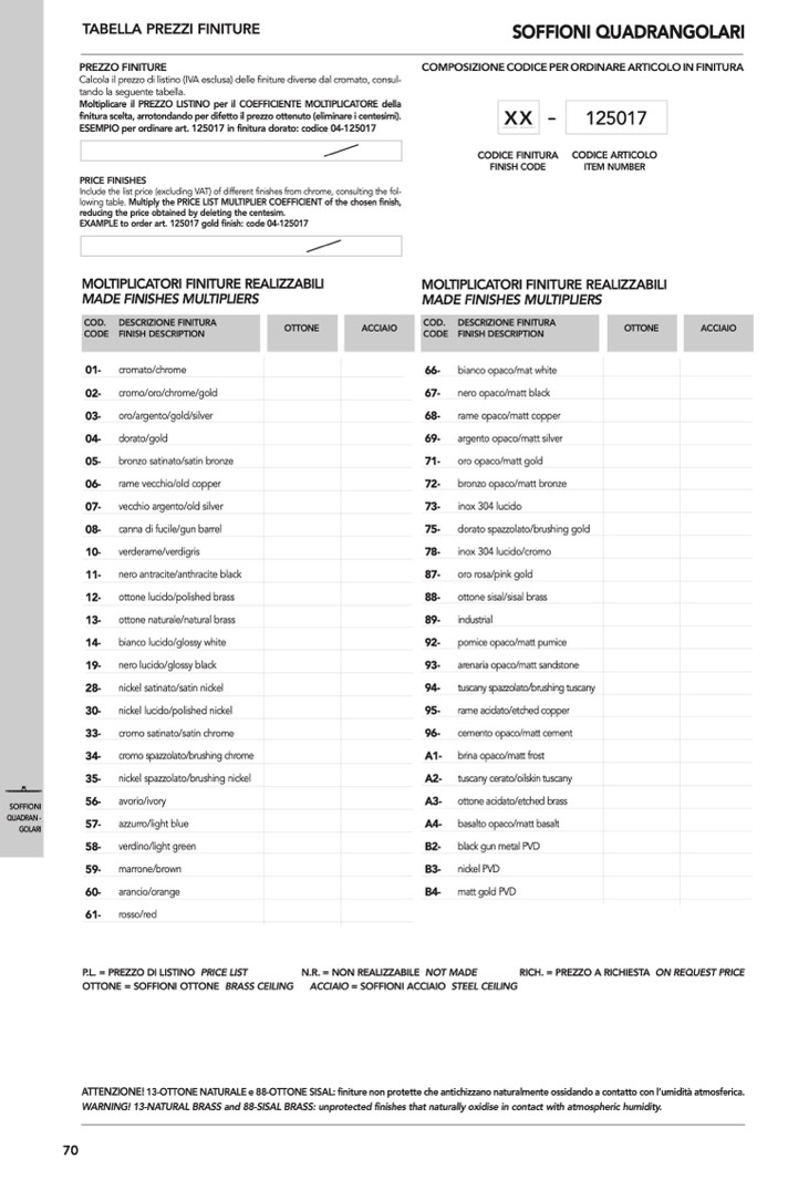 lowing table. Multiply the PRICE LIST MULTIPLIER COEFFICIENT of the chosen finish,