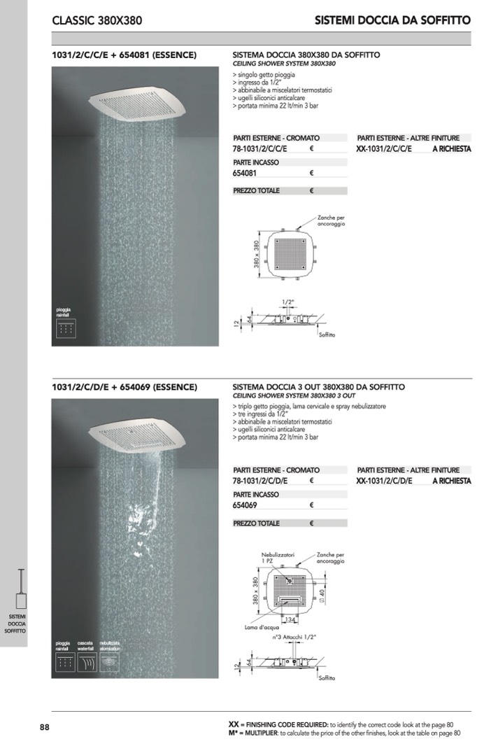 CEILING SHOWER SYSTEM 380X380 3 OUT