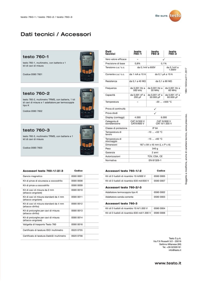 testo 760-2, multimetro TRMS, con batterie, 1 kit