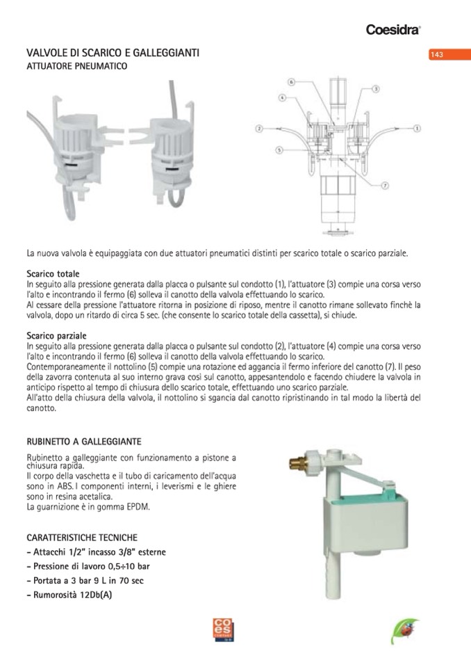valvola, dopo un ritardo di circa 5 sec. (che consente lo scarico totale della cassetta), si chiude.