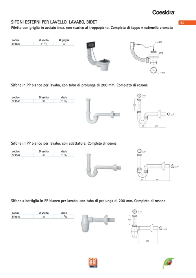 Sifone in PP bianco per lavabo, con adattatore. Completo di rosone