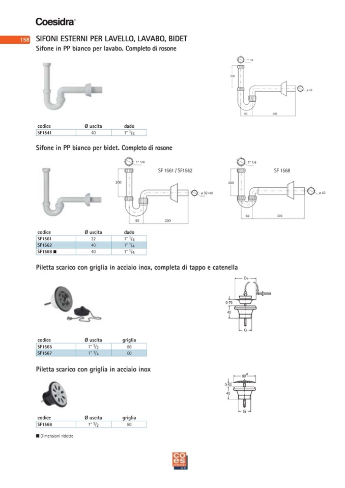 Piletta scarico con griglia in acciaio inox, completa di tappo e catenella