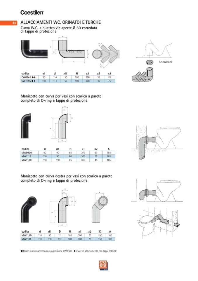 ● Usare in abbinamento con guarnizione GW1020 ◗ Usare in abbinamento con tappi TC050C
